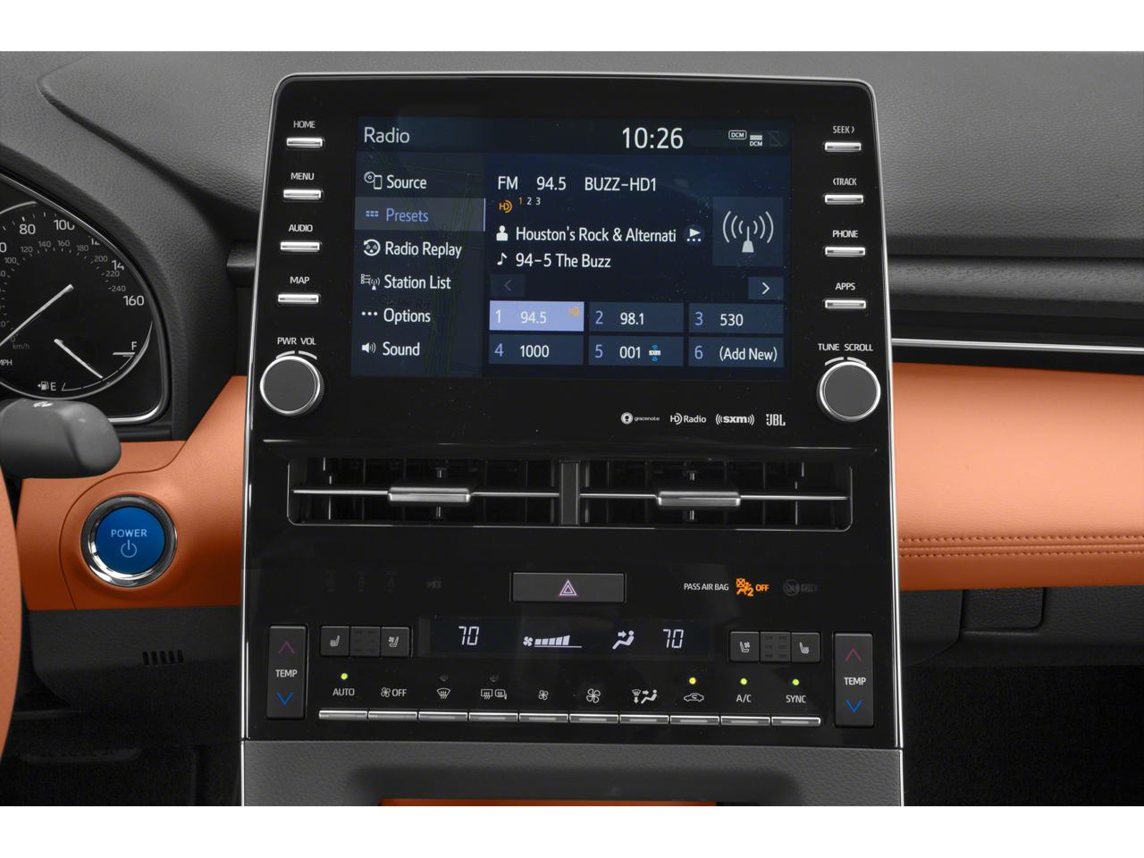 - Radio: Premium Audio w/JBL & Clari-Fi -inc: 14 speakers, subwoofer, 1200-watt amplifier, 9" touch screen, Amazon Alexa in-car app, Apple CarPlay, auxiliary audio jack, a USB 2.0 port w/iPod connectivity and control, dynamic navigation w/dynamic POI search and 3-year trial, dynamic voice recognition w/3-year trial, Bluetooth® hands-free phone capability and music streaming, Entune app suite, Siri Eyes Free, HD Radio, SiriusXM Satellite Radio w/3-month all-access trial, Entune 3.0 Toyota Connected Services, Safety Connect w/3-year trial, Service Connect w/3-year trial, Remote Connect w/6-month trial, Wi-Fi Connect up to 2GB w/6-month trial, Destination Assist Connect w/6-month trial